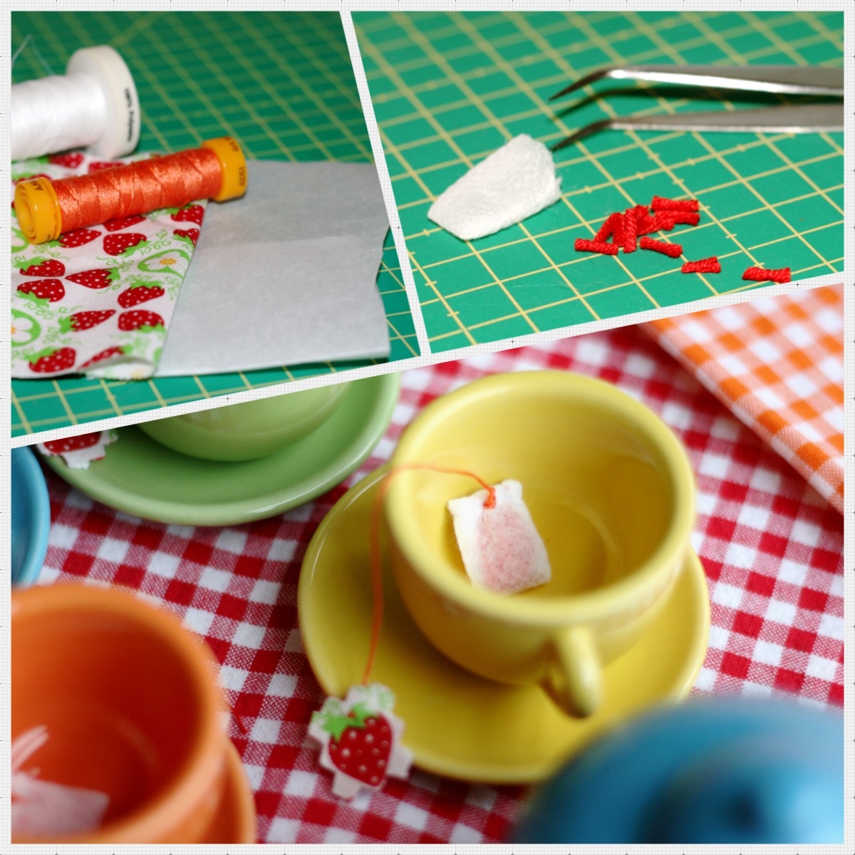 Neulich war der Lütte zum 3. Geburtstag einer Kindergartenfreundin eingeladen. Auf dem Wunschzettel stand ein Puppen-Teeservice. Es mussten noch passende Puppen-Teebeutel her. Da bin ich allerdings nirgendwo fündig geworden, somit habe ich kurzerhand welche genäht.